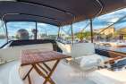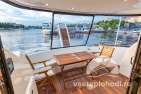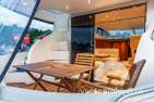 На флайбридже (верхняя палуба) оборудована мягкая зона отдыха на открытом воздухе с диваном и столом на 6-7 гостей, защищаемая от солнца бимини-топом, также здесь расположен дублирующий пост управления яхтой. Кокпит (открытая площадка на корме яхты) на основной палубе оснащён мягким диваном в ширину корпуса и большим столом и стульями, здесь могут разместиться 7-8 гостей.