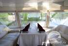 В формате фуршета на борту размещается до 90 человек, при банкете – 70. Вместительный банкетный зал площадью 50 кв.м., меблированный подиум 19 кв.м. и второй банкетный зал 30 кв.м. на верхней палубе обеспечивают простор и комфорт даже при большом количестве гостей. В оформлении интерьера преобладает бежевый цвет и натуральное дерево. Оттенок и правильно подобранная форма мебели привносят элемент французского шарма. Реконструкция проведена в 2013 году.