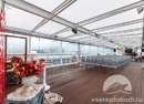 Верхняя палуба с безрамным панорамным остеклением позволяет получать удовольствие от прогулки независимо от погоды за бортом теплохода, а специальная палубная мебель и панорамное безрамное остекление создают комфорт и защищают пассажиров при проведении различных мероприятий.