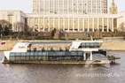 Маршрут теплохода проходит по центру Москвы, с отправлением от причала «Международная выставка», или по акватории Серебряного бора. Возможность подачи к другим причалам столицы уточняйте у наших менеджеров.