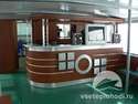 Нижняя палуба представлена просторным банкетным залом с небольшой выделенной зоной для отдыха гостей в носовой части, полноценно оборудованным камбузом и туалетными комнатами. Комплект аудиооборудования позволит проводить различные мероприятия – от шумных застолий до деловых переговоров.