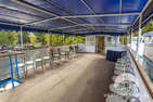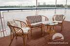 В кормовой части расположены лавочки для отдыха. Верхняя палуба зонирована на две части: крытая зона с раздвижными окнами, ротанговой мебелью и столами, оформленными белым текстилем; а также открытая часть с тентом для отдыха на свежем воздухе.