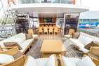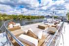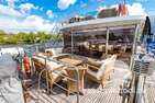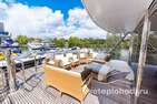 Прогулочная палуба на втором ярусе представляет собой летнюю террасу с ротанговыми креслами и кофейным столиком. Дополнительным бонусом служит флайбридж.