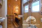Комфорт обеспечивает многоуровневое освещение, качественная система климат-контроля, мультимедийная система. На борту также оборудована сауна.